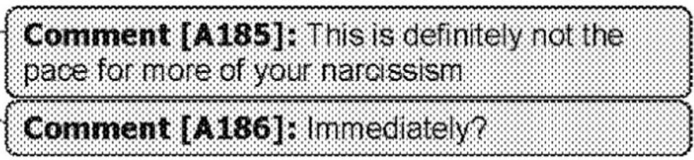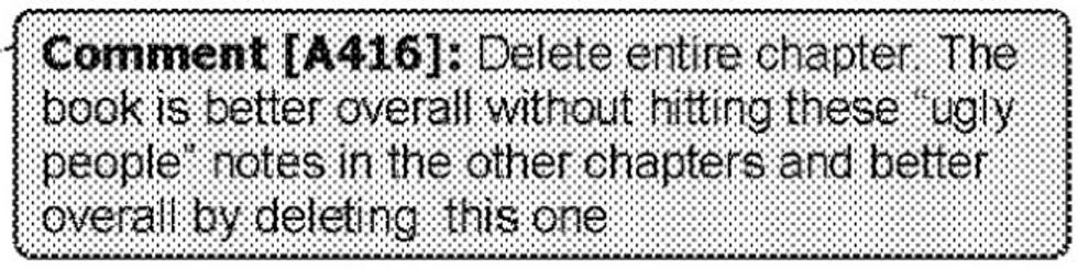 With that said: I have never seen edits like this. I've read probably 20 books that were marked up; it's not uncommon for advance readers to get an early draft. When I review a book it's with the understanding that there will be errors and misspellings and that whole passages might still be rewritten. I have never seen edits like this.