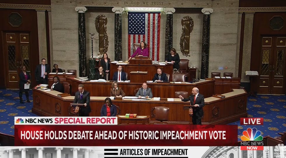 12: 04:OK, the rules passed, surprise! (Not surprise.) Now the articles of impeachment are being read in advance of the debate, which will definitely happen soon, very!