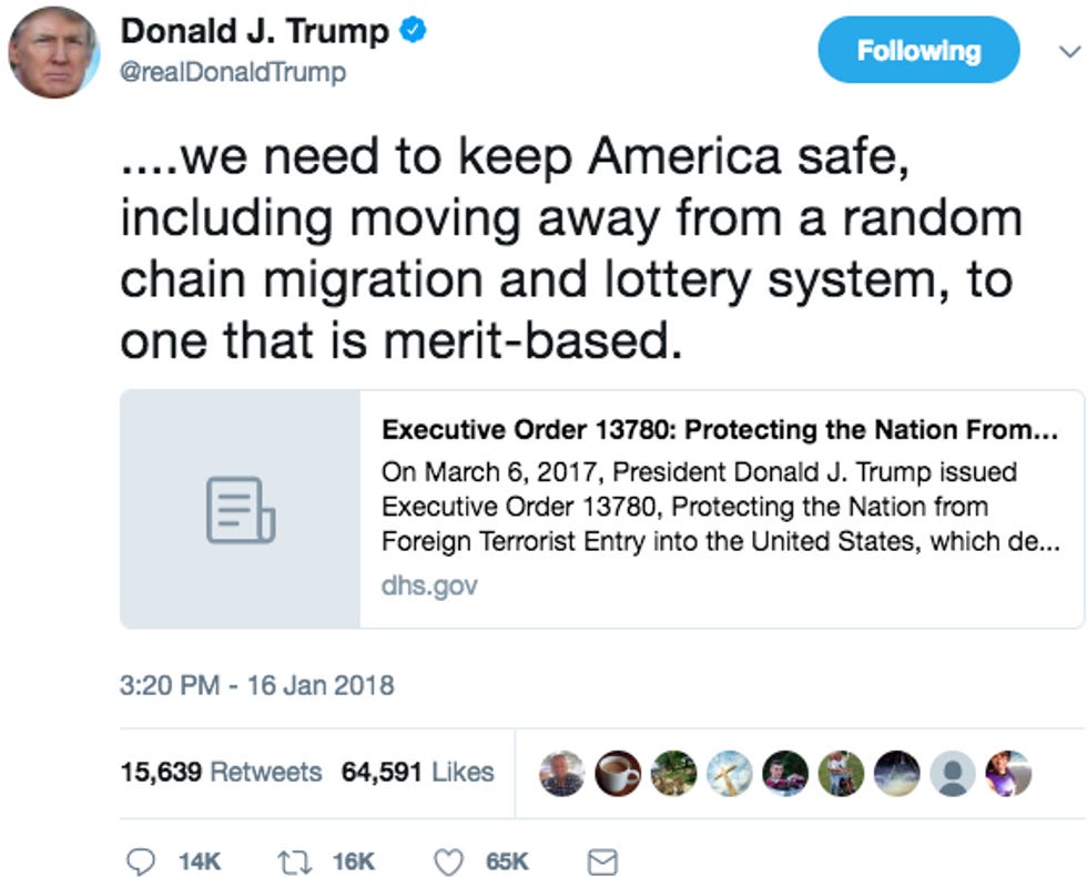 — Donald J. Trump (@realDonaldTrump) January 13, 2018