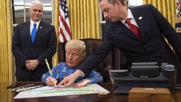 All those stupid numbers'n'shit give President Twitter Fingers a headache. He was the best student at Wharton, though, believe me. So he knows the way you math good is to start with the answer and then work backward to the question. Don't worry, the answer is always SCARY MUSLIMS ARE BAD, OKAY?