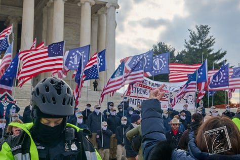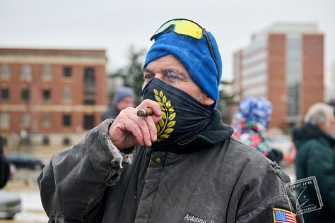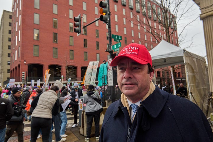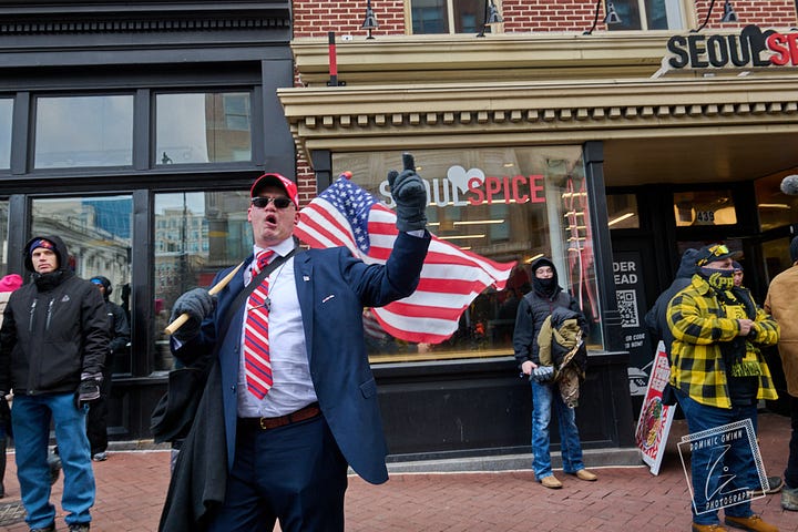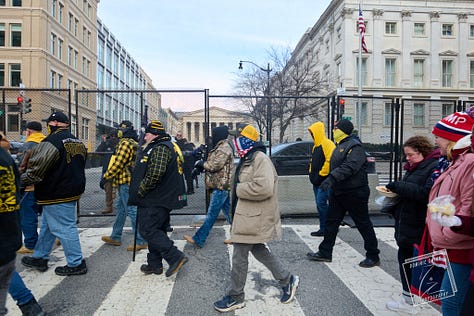 The following day, Trump started doling out pardons and commutations to J6ers. There was a staging area of media people outside DC’s Central Detention Facility in South East (AKA: “jail”) after the insurrectionist vigil was mobbed by media and Trump supporters hoping to see people get released. A few Proud Boys were there, and some recently released insurrectionists showed up. But it was too goddamn cold to stand around with my thumb up my ass hoping to catch a glimpse of … whomever.
