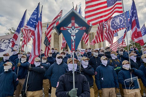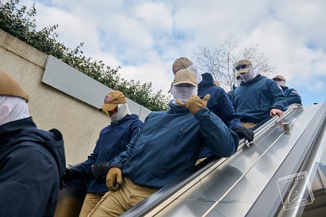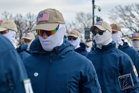 This was the first time I'd ever seen Patriot Front in person. The photos and videos I’d seen suggested they had some training, and money. And whenever they show up someplace, there’s a good chance a fight breaks out.