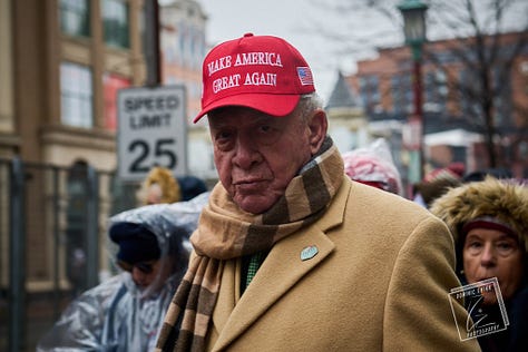 A maze of high security fencing had been growing exponentially downtown for days. Occasionally, some out-of-town cop would high-five the Trump supporters snaking their way through another ludicrously long line to the arena. The bullshit vendors started selling Trump toboggans and t-shirts that read, “Daddy's Home” to freezing rubes stuck in line.