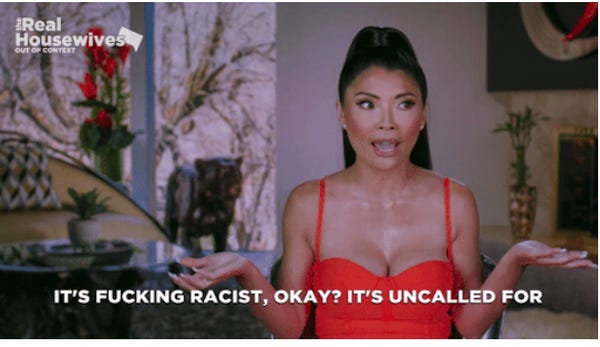 Nguyen and her friend claimed that she herself did not post those things to her Facebook page, but rather her "social media team" did. However, she wasn't a Housewife or any kind of celebrity at that point so it's not clear why she would have a social media team of virulent anti-Black racists running her Facebook page. She claims she was too busy at the time, but if you're not famous and it's not your job, social media is something you do for your own entertainment. That would be like hiring someone to binge-watch Netflix shows for you. Nguyen, at the time, owned a few medspas, so why she would hire someone to post racist memes about Black Lives Matter instead of Botox remains a mystery.