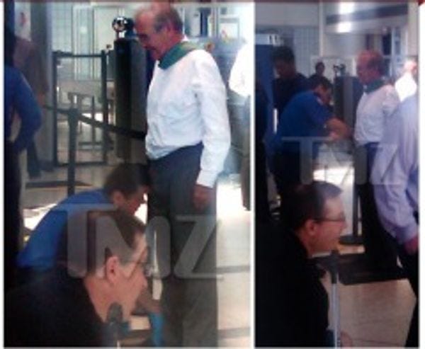America's only news source, TMZ.com, posted a funny picture of Rummy getting the squeeze at an airport security zone. His tie is all flying around, somebody's got a baton up his butt, it's comical.