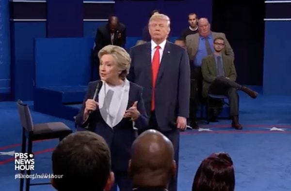 Ultimately, though, it really is all Hillary Clinton's fault, as Trump proved when he badgered her a few minutes later for her failure as a senator to eliminate the carried interest provision, which is one way businesses write off their losses. Clinton said she had indeed tried to reform carried interest, but Trump, utterly unaware of how American Government works, was pretty sure she could have made it go away if she'd been gooder at Senatoring: