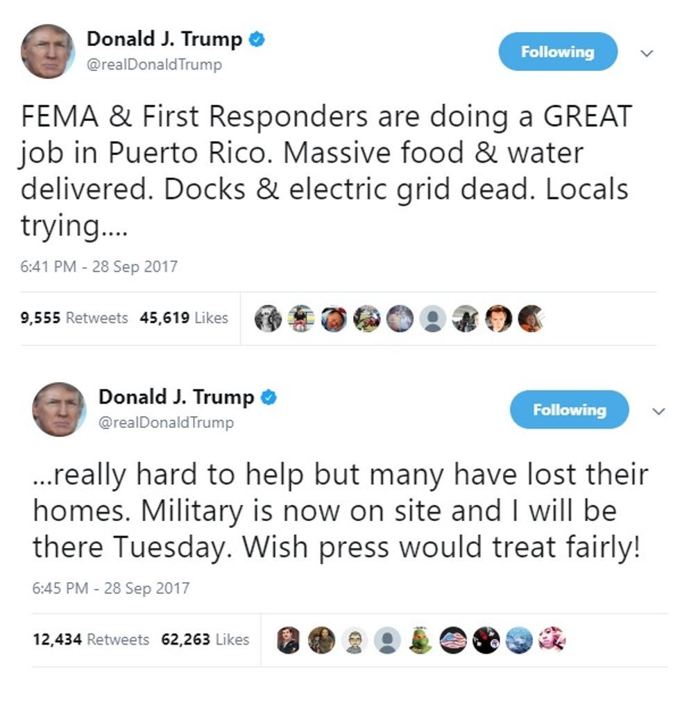 Thankfully, Donald Trump knows how to fix Puerto Rico now: Whine that the media is being mean to him. It's really perfectly obvious, he explained on Twitter yesterday: