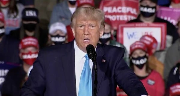 It's unclear what Trump means by an “uneven performance," unless he's also comparing Biden's shakier earlier debates with his most recent roof-raising town hall. It's most likely that Biden was just rusty early on and has gotten better with more consistent practice, as opposed to Trump whose mind has rotted like that Halloween pumpkin you forgot about and left on your porch until after New Year's.