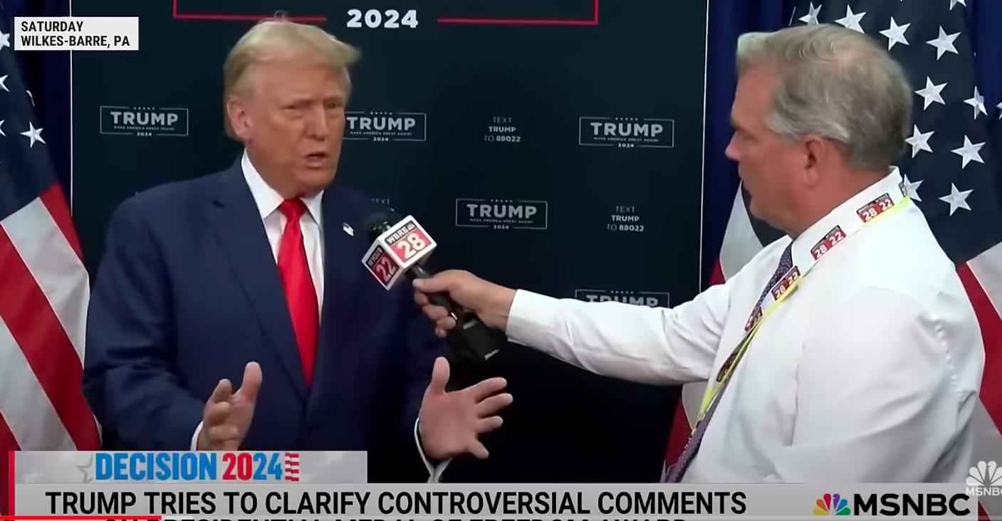 Two days later, a reporter caught Trump backstage at one of his campaign rallies where he didn’t get shot and asked him to clarify (starting around the 1:07 mark):