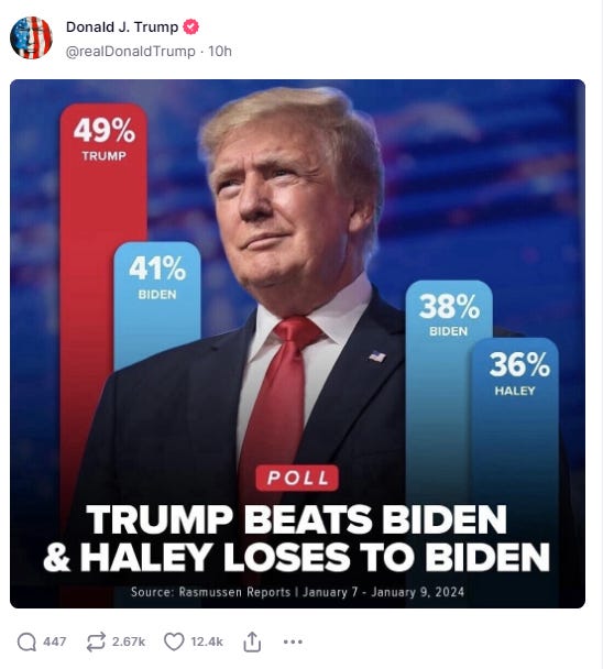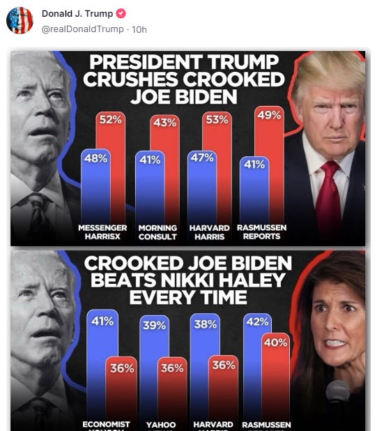 “Wow! We are doing really well despite all of the Biden Votes going for Haley!!!”