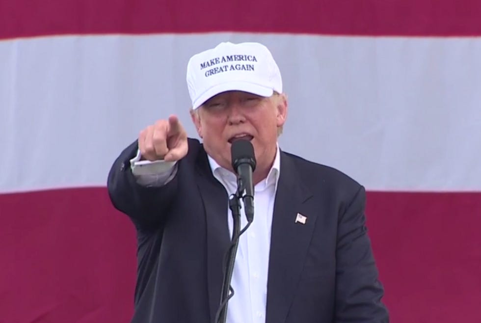And he pointed at her like this, so the human tubes of expired Easy Cheese at his rally knew EXACTLY which offending journalist, who just happened to be a young woman, was NOT REPORTING IT, KATY!