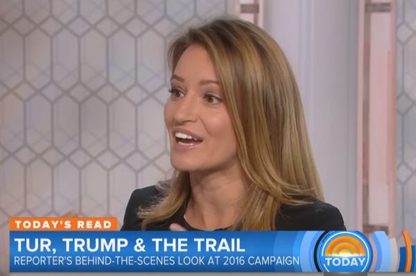 Let us say on the front end that we love Katy Tur, which means we are #BIAS. She is so smart and good and funny and delightful, and if yr gay-ass Wonkette may be allowed a brief moment of heterosexuality, she is SO PRETTY YOU GUYS OMG.