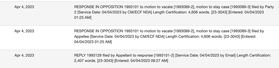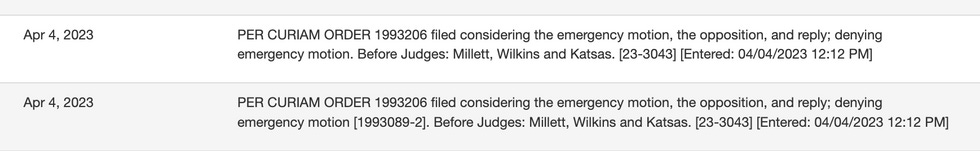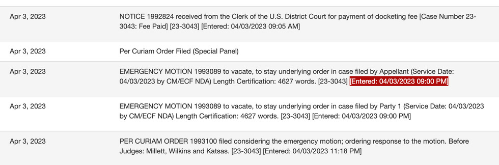 That's not an emergency appeal — that's just put them in the regular line. They don't get around to filing for an emergency stay until 9 PM YESTERDAY.