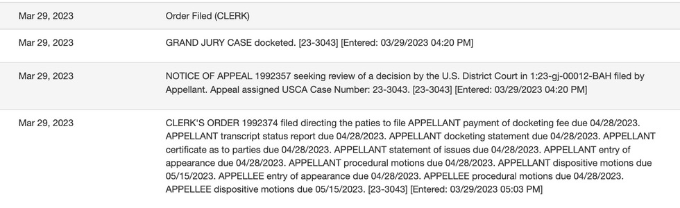 On March 29, Trump and his lawyers finally moseyed into the DC Circuit and filed their appeal. Take your time, boys!