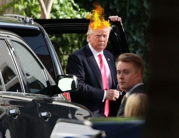 Miraculously, Trump's other current hobbyhorse, the indisputable fact that his Star of David tweet was not a Star of David tweet, didn't come up at either meeting, probably thanks to warnings from the Senate's Zionist Illuminati paymasters.