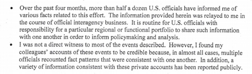 The whistleblower did not witness most of this conduct personally, but rather "more than half a dozen" officials told him. (Yes, there's information on the internet starting to come out about who the whistleblower is. And yes, we have a feeling half of DC already knows who it is anyway.)