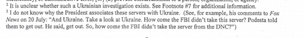 2: 33:In a footnote to the section about the call, the WB essentially says, "And no, I do not know why the fuck President Dipmouth thinks the DNC server is Ukraine, or if he knows what a server actually is."
