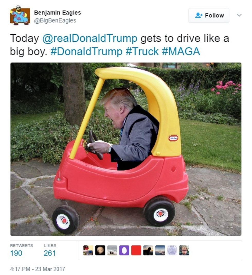 Pity poor Donald Trump. He's the world's greatest dealmaker, and yet here he is just telling Congress they'd better pass an Obamacare replacement of some kind today -- he doesn't really care what's in it, really, as long as he wins -- or he'll just take his nuclear football and go home. Or to his home in Florida. Which he was going to do anyway, but the point is, he's really not enjoying this presidenting gig as much as he thought he would, according to some traitors who spoke to the Failing New York Times, and frankly he wishes now he'd started with something everyone likes, like cutting taxes for millionaires: