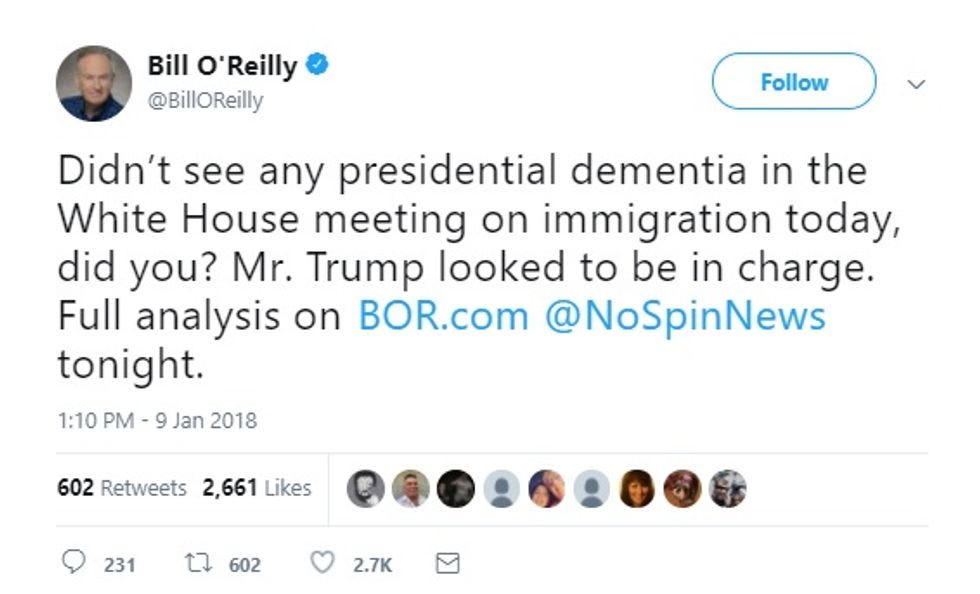 Mental stability expert Bill O'Reilly saw a man in full control of both the meeting agenda and his faculties:
