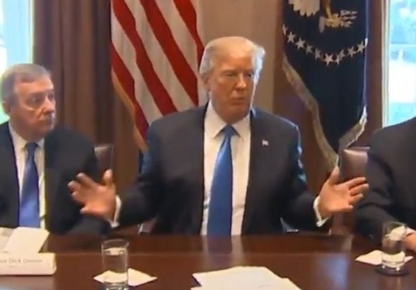 TRUMP: I have no problem — I think that’s basically what Dick [Durbin] is saying. We’re going to come out with DACA. We will do DACA and then we can start immediately on phase two which would be comprehensive.