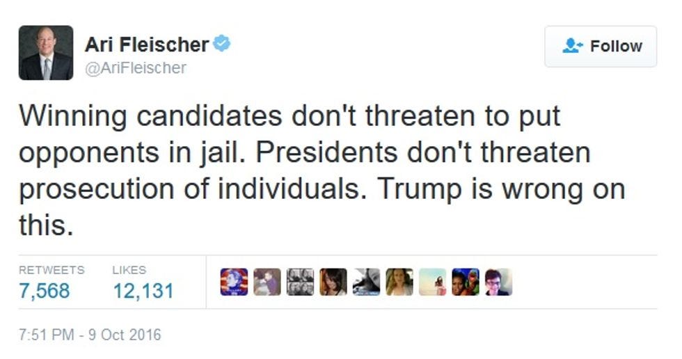 Now, with the trajectory the election appears to be on, it's pretty unlikely we'll get to see Donald Trump try it, but for what it's worth, most people who know how governing works took a pretty cool view of the idea. Even George W. Bush's press secretary Ari Fleischer: