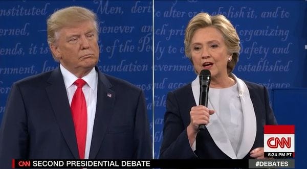 Clinton didn't exactly hit back with a vigorous defense, instead just telling viewers to go to her website to see all the fact-checking, which struck us as less than compelling. But then she made a point we couldn't disagree with: