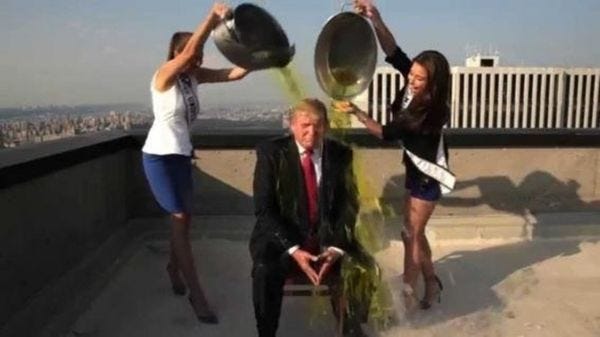ETA: The pee hooker tape may or may not be real (it's real), but it doesn't feature Russian hookers peeing on Trump; they pissed all over a bed where President Obama slept. Allegedly.