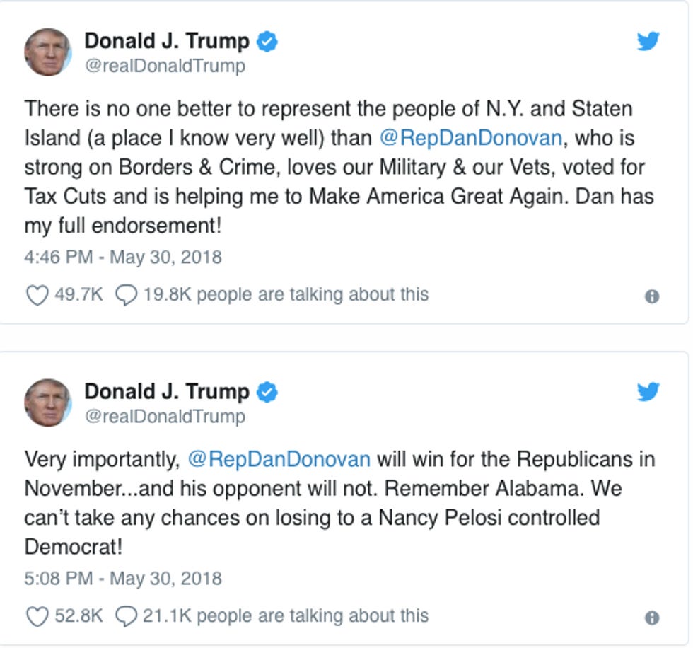 Donald Trump endorses sycophant Dan Donovan over ex-convict Michael Grimm