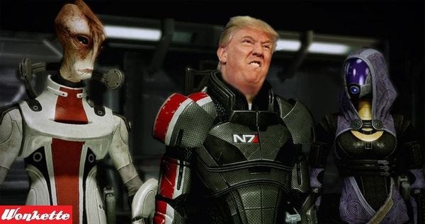 Donald Trump saw a video tweeted by a Trump fan that he really liked, and so he retweeted it. But Jesus H Christ in a laser turret, what a video it is: a loving Trumpanization of the trailer for BioWare's video game Mass Effect 2 , complete with solemn voice-overs by Martin Sheen. Gaze upon the majesty of this thing (and consider turning your speakers down if you're at "work"):