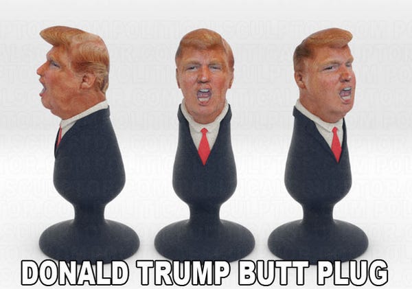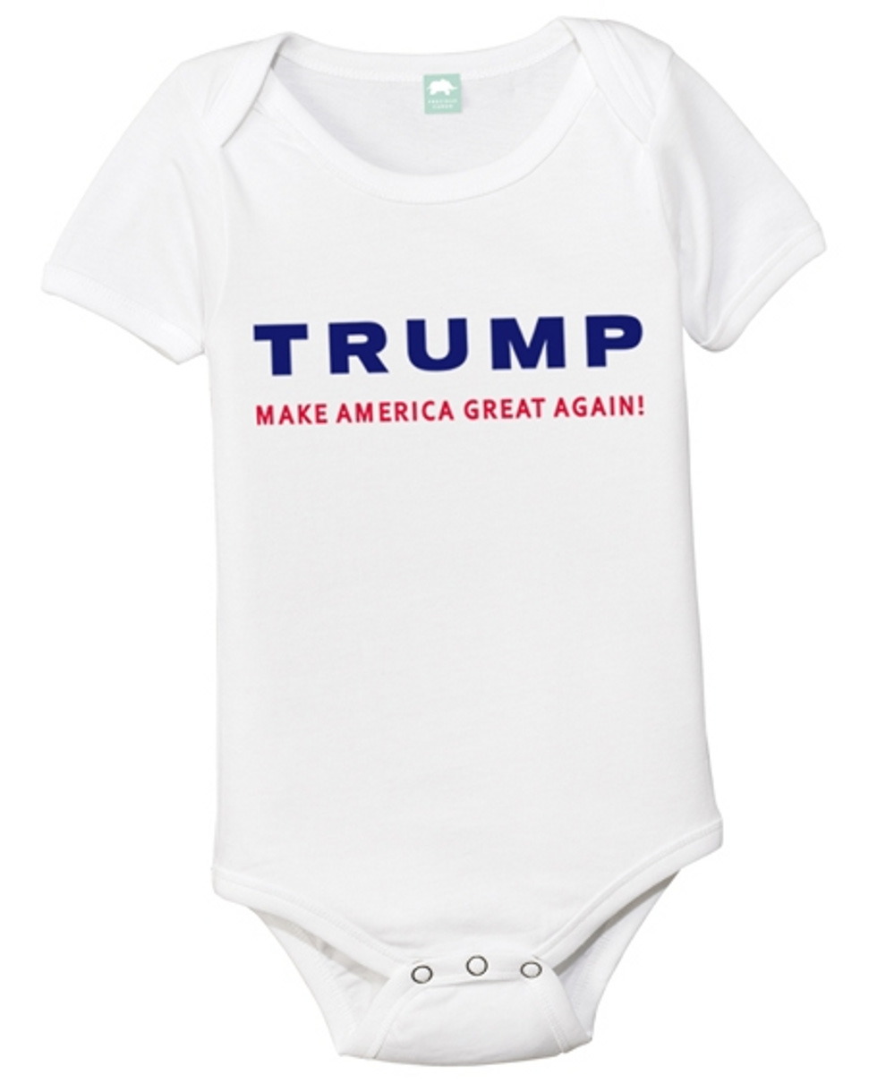 First, the bad news. No, you cannot buy a Trump piñata, to beat to death with a stick, sorry. Also, no Trump buttplugs.But you can buy this adorable onesie for your baby, so long as you promise not to feed it with your breasts, because that's "disgusting."