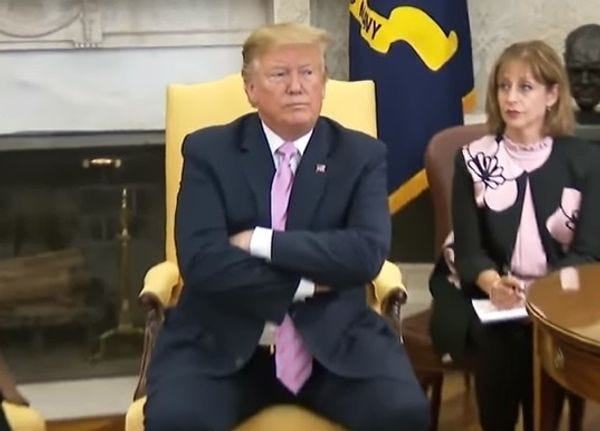 Here's the bit where Trump decided that lying about family separation was even more important than letting Sarah Huckabee Sanders herd the press out of the Oval Office.