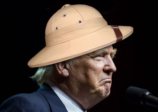 Following his breakout success playing Gen. Buck Turgidson in a dinner theater production of "UN General Assembly" Tuesday, Donald Trump followed up yesterday with a smash performance as "Generic Clueless Colonialist" during a meeting with African leaders. He did at least manage to stick to his prepared text long enough to say