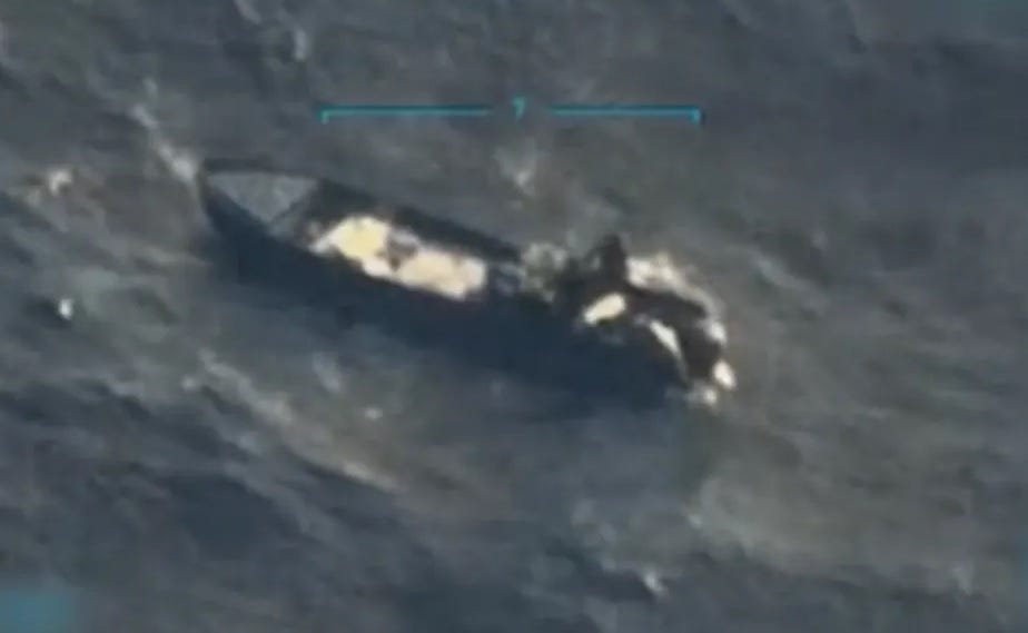 In addition to the most recent deadly attack, the US Navy also boarded a Venezuelan fishing boat on Friday and held its nine crew members for eight hours before not finding any drugs among the tuna they’d caught. In an extraordinary bit of phrasing, the New York Times says, “The suspicions the vessel was carrying drugs apparently proved unfounded, so the Navy and the Coast Guard let the people go without killing anyone.”