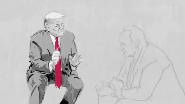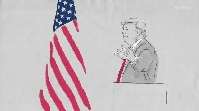 In the midst of his impeachment imbroglio, Donald Trump last night tweeted a little video made by a Trump supporter, with little video snippets rotoscoped into cartoon form, over some bland Trump teleprompter speech we suppose is meant to be inspiring, as if anyone listened. (Huffpo identifies it as his 2017 Liberty University commencement speech, which would explain why he's not ranting about emails and globalists.)