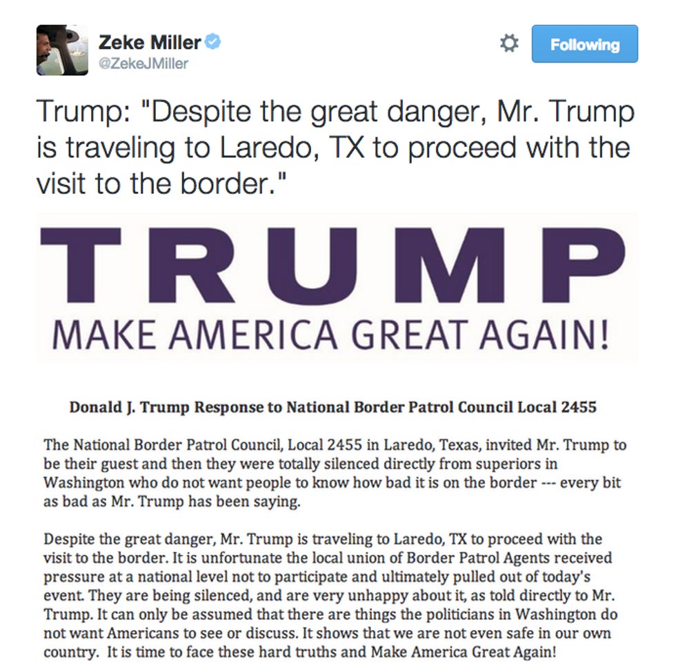 The YOOOOGE humiliation of being disinvited to Laredo, Texas, by the Border Patrol might be a problem for a lesser man, but Donald fuckin' Trump is DONALD FUCKIN' TRUMP: