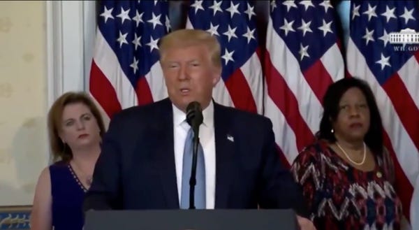 Trump tried to turn this all around Tuesday when he signed a pardon for Susan B. Anthony, who no one explained to him is 200 years old and dead. He announced his bold advance of women's rights during a White House event commemorating the 100th anniversary of the ratification of the 19th Amendment, which granted (white) women the right to vote.
