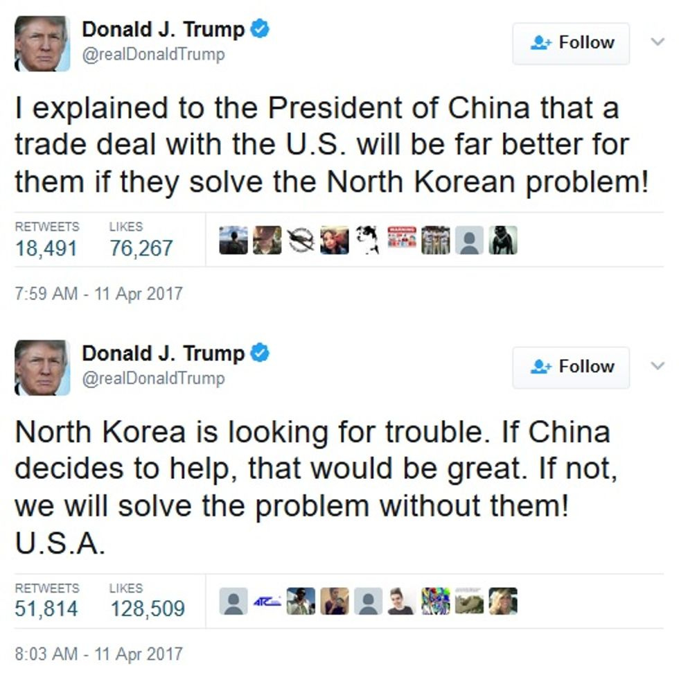 You might be forgiven for thinking, even after last weekend's golf summit with President Xi at Mar-a-Lago, that perhaps Trump saw the crisis on the Korean Peninsula in simple-minded terms, at least if you were going by his Tweets on the matter Tuesday: