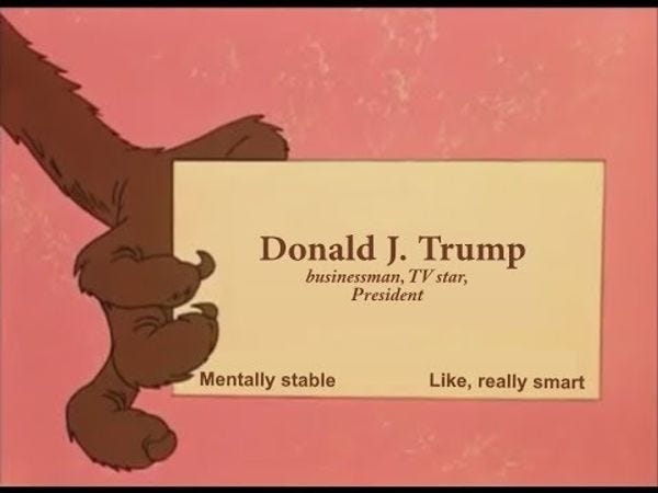 In any case, we're glad that Donald Trump is so very pleased to have astonished doctors with his completely unimpressive normal score, whether in 2018 or now, and we wish him many more years of boasting about how he is absolutely more average than anyone thought possible.