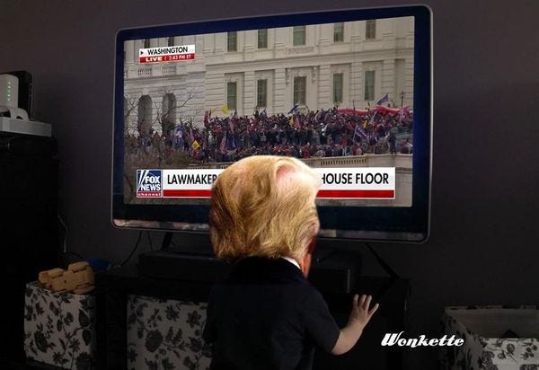 When the US Capitol was being overrun by rioters who believed Donald Trump's lies about the election being stolen from him, the Great Man himself was largely unavailable to talk to anyone telling him he needed to do something. For one thing, he'd already done something by sending the mob off to storm the Capitol. For another, he was having far too much fun watching the riots unfold on TV, because look at all those Great Americans taking back America from its duly elected lawmakers! The Washington Post offers an inside view of the White House during the coup attempt that should be disturbing, except that it tracks so well with what we all know about Donald Trump by now. Which is to say, it's the expected tire fire in a garbage dump, overseen by a superannuated toddler who still has access to the nuclear codes.