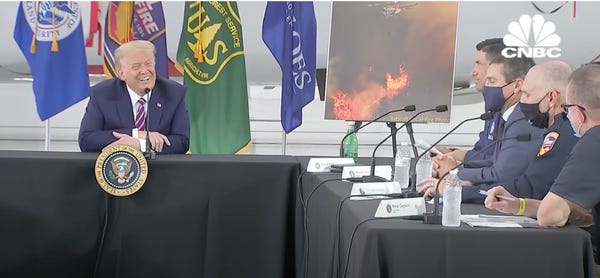 That was Trump's response to Wade Crawfoot, California's secretary for Natural Resources, who'd just informed the fool of the record high temperatures the state has endured over the past few months. When Crawfoot said it had reached 130 degrees in Death Valley, Trump smirked and muttered, “That's hot!" like he was judging one of his Miss Teen USA pageants.