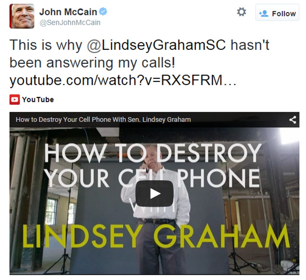 Wednesday afternoon, Graham's work daddy John McCain tried to get in on the Twitter LOLs: