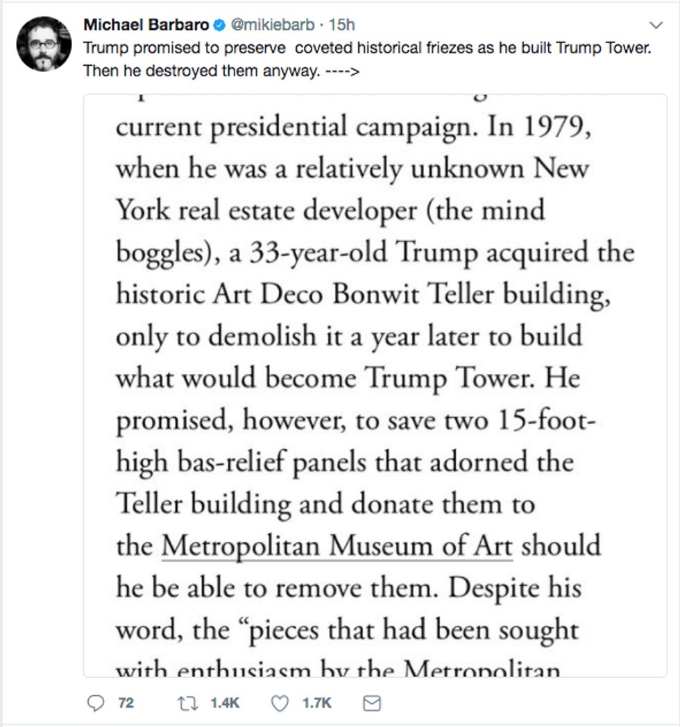 In 1980, Donald Trump had promised to salvage two iconic Art Deco friezes when he demolished the Bonwit Teller building in New York. The Metropolitan Museum of Art was looking forward to displaying the pieces in its department of 20th century art.