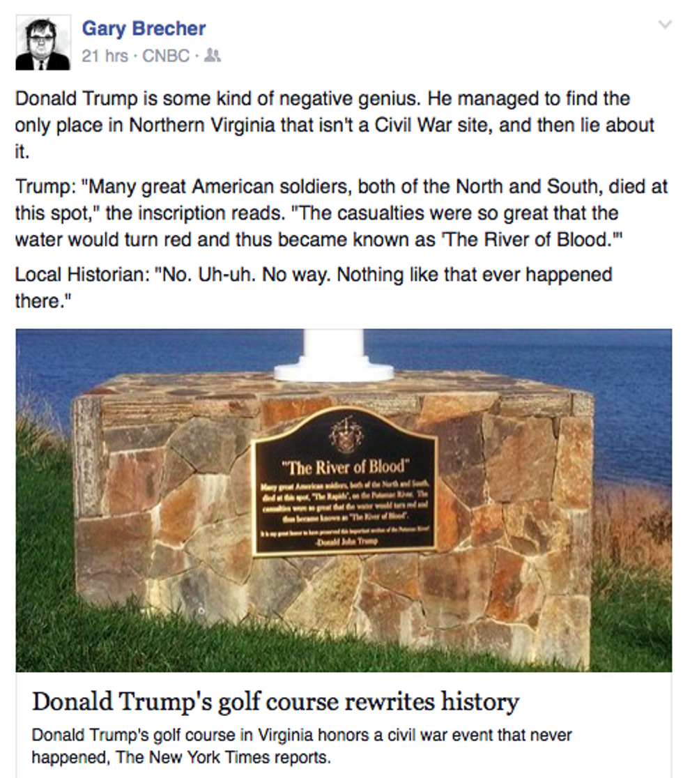 Mr. Trump repeatedly said that “numerous historians” had told him that the golf club site was known as the River of Blood. But he said he did not remember their names.