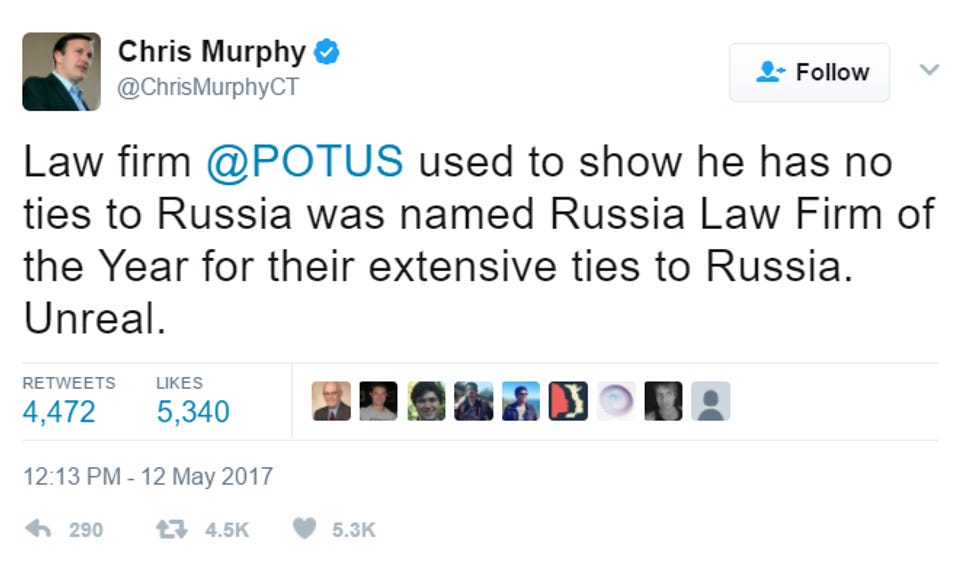 GUYS, breaking news, because the Trump-Russia investigation is SO OVER BRO, and you know why? Because Donald Trump's very honest and kind lawyers have written a letter! A certified letter! Dated March 8! And it says that, except for all the money Donald Trump has made from Russians, he hasn't made any money from Russians, and he definitely does NOT owe the Russians any money. QED! It is just a very good letter. Let's read it, and reflect on how very wrong we have all been, thinking Donald Trump might somehow be compromised financially by Russia, when we can see from this VERY GOOD CERTIFIED LETTER that he hasn't made any money from the Russians, except for when he has.
