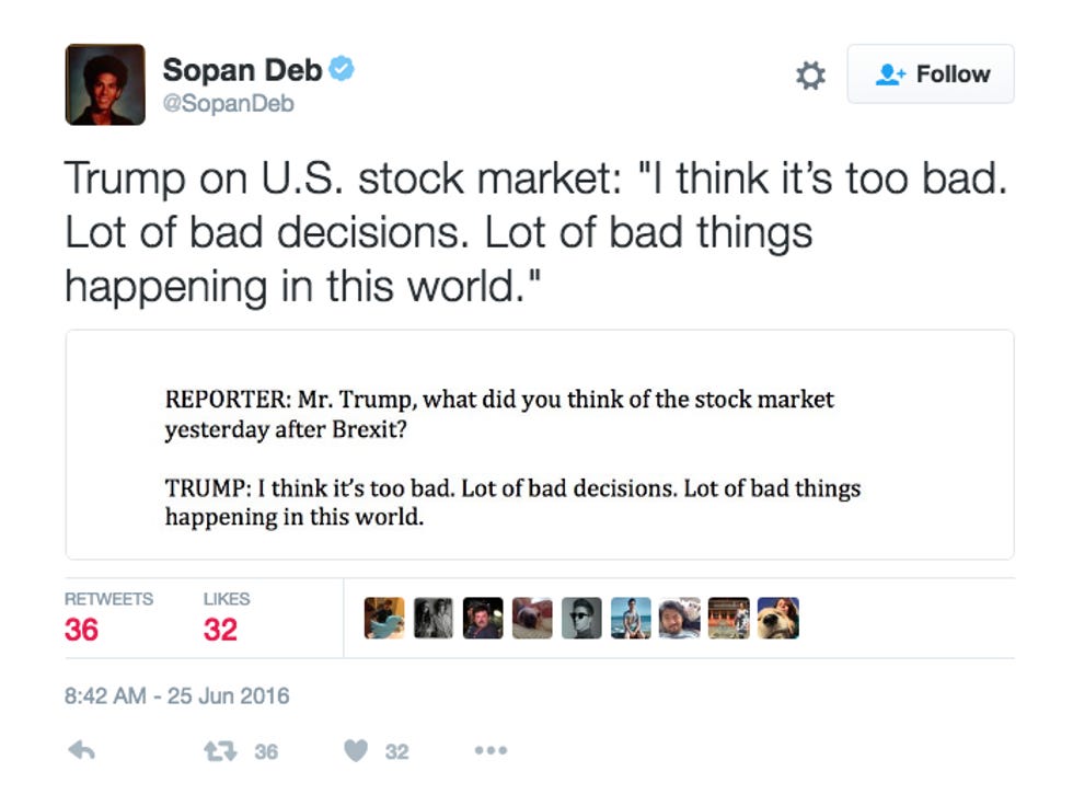 Yes, very bad, those things that are happening because of the thing (Brexit) that Trump is for.