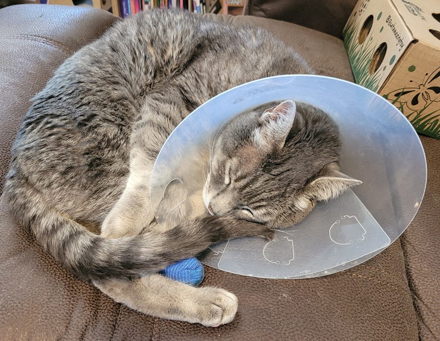TL;DR version: he's doing great, hates the Cone of Shame, but is resting comfortably!