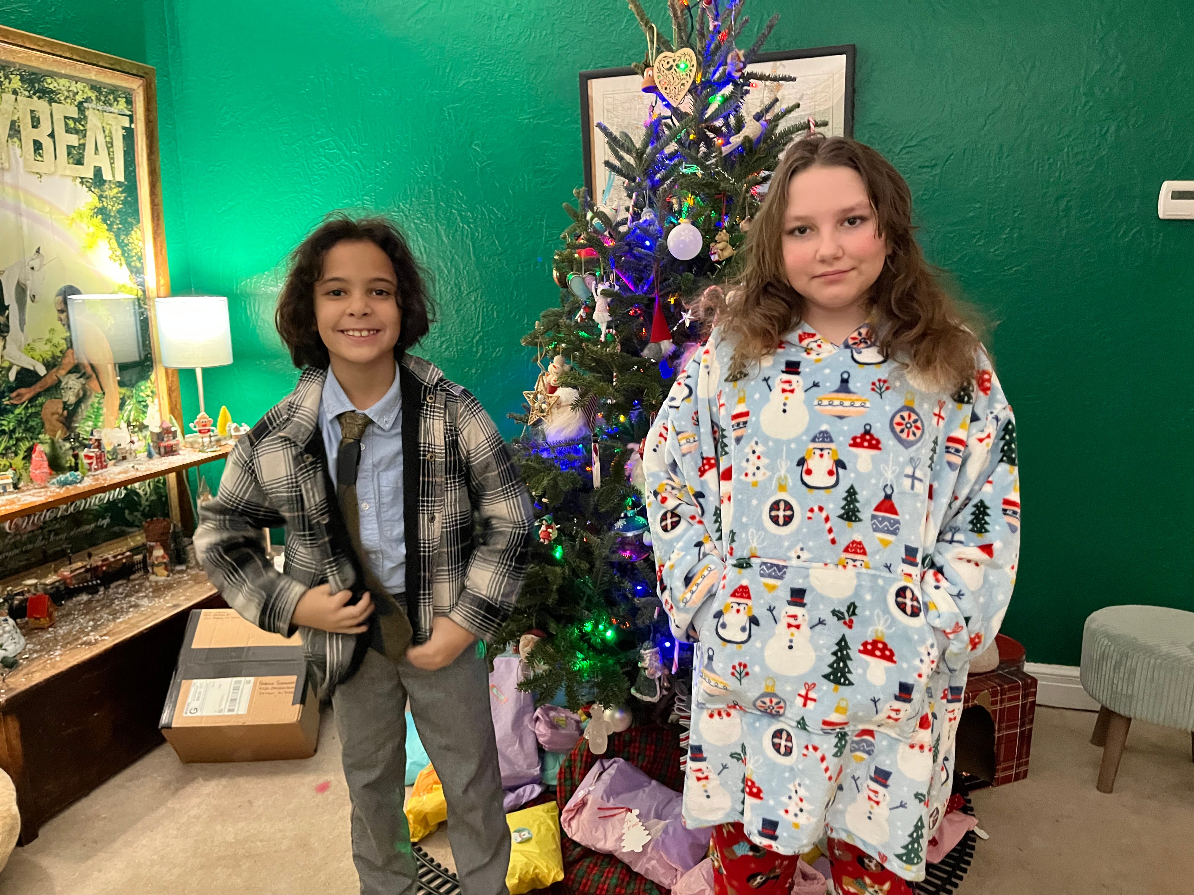 Lu and Donna ready for the school Christmas program. I think they should do “Christmas in Hollis” next year, it’s the best song.