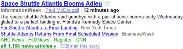 Let's see, we've only had five actual Space Shuttles, and two of them have blown up -- killing everyone aboard and bumming out the nation for weeks/months -- and actually Endeavor was built of old Challenger replacement parts after that shuttle exploded shortly after launch, meaning we started with just four, and half of that original fleet blew up, and it was horrifying. So what's a good headline for the Atlantis making a safe landing after its final pointless orbits around Earth? Yes, yes, "Space Shuttle Atlantis Boom Adieu" should work nicely. Bonus points for using French, too, so we can suspect terrorism.