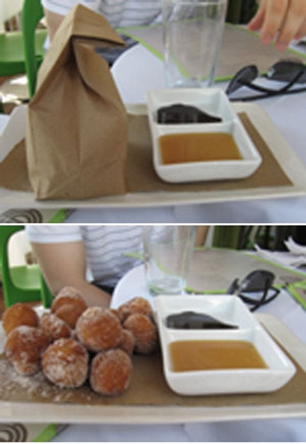 Like many other brunch establishments in the District, Darlington House offers homemade doughnuts (in this case, doughnut holes) as an excellent shareable brunch accompaniment.These holes, strangely, are delivered to your table in a paper bag, but once removed from said bag, are warm, fluffy, and delicious, and come with both chocolate and caramel dipping sauces.