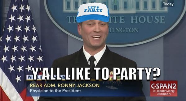 Dr. Ronny Jackson PEACES OUT. Wonkagenda For Thurs., April 26, 2018